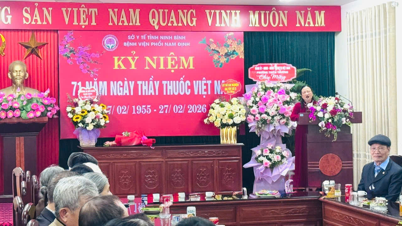 Nhân kỷ niệm 71 năm Ngày Thầy thuốc Việt Nam (27/2/ 1955 – 27/2/2026), ngày 26 tháng 2 năm 2026 Bệnh viện Phổi Nam Định đã long trọng tổ chức chương trình gặp mặt, tri ân các thế hệ cán bộ, viên chức và người lao động đã và đang công tác tại đơn vị. Buổi gặp mặt là dịp để tập thể bệnh viện cùng nhau ôn lại truyền thống vẻ vang, bày tỏ lòng biết ơn sâu sắc tới các thế hệ thầy thuốc đã cống hiến tâm huyết cho sự nghiệp chăm sóc và bảo vệ sức khỏe nhân dân.