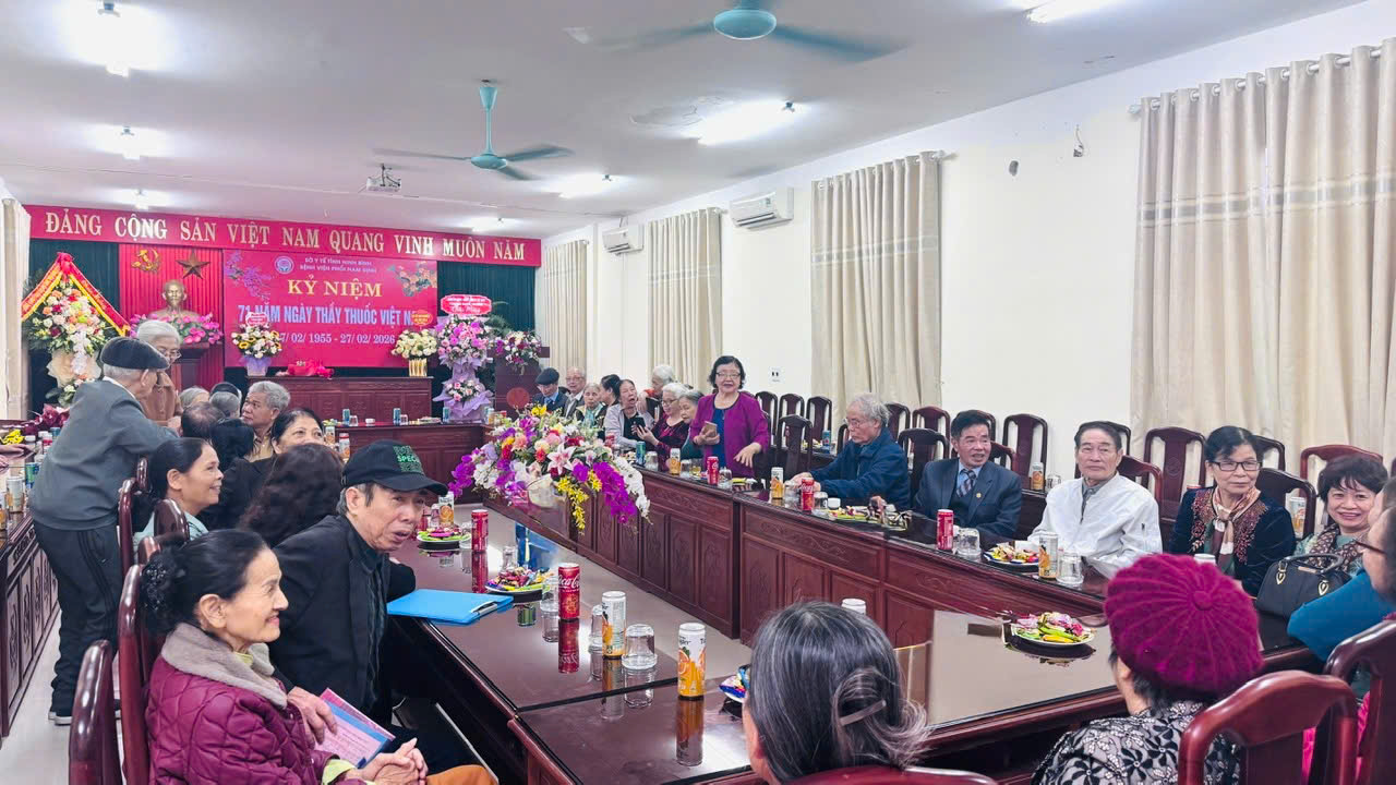 Phát biểu tại buổi gặp mặt, đồng chí Vũ Quang Phúc Giám đốc bệnh viện nhấn mạnh: những thành tựu mà bệnh viện đạt được hôm nay là kết tinh từ công sức, trí tuệ và sự hy sinh thầm lặng của nhiều thế hệ cán bộ, y bác sĩ. Dù ở bất kỳ cương vị nào, các thế hệ thầy thuốc của bệnh viện luôn nêu cao tinh thần trách nhiệm, tận tụy với người bệnh, giữ vững y đức và không ngừng học tập, nâng cao trình độ chuyên môn.