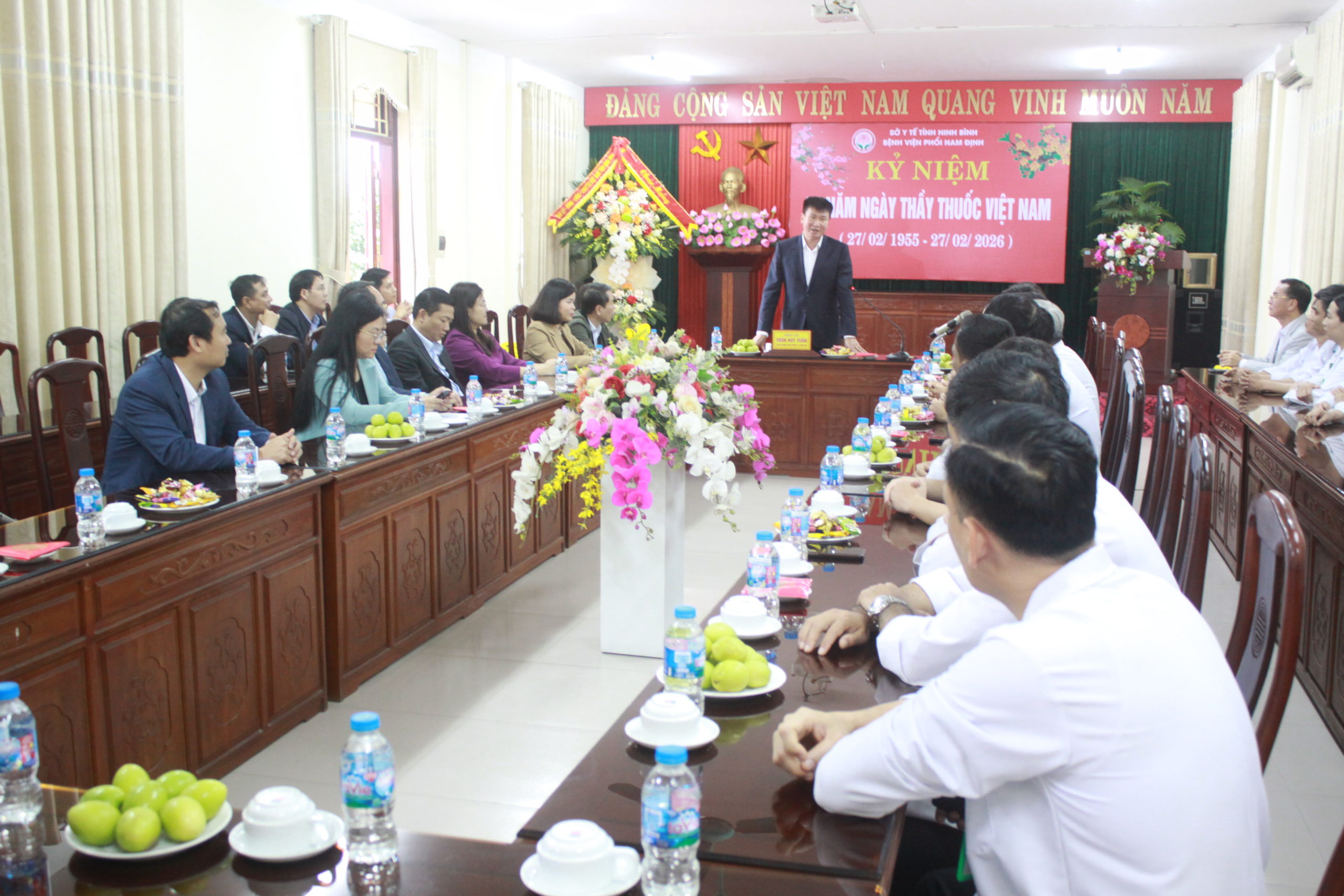 Nhân kỷ niệm 71 năm Ngày Thầy thuốc Việt Nam (27/2/1955 – 27/2/2026), ngày 24/02/2026, đồng chí Trần Huy Tuấn – Uỷ viên BCH Trung ương Đảng, Phó Bí thư Tỉnh ủy, Chủ tịch UBND tỉnh làm Trưởng đoàn đã đến thăm, chúc mừng tập thể cán bộ, y bác sĩ, người lao động bệnh viện Phổi Nam Định và cùng đi có các đồng chí: Lãnh đạo Thường trực Tỉnh ủy, Lãnh đạo HĐND tỉnh, Lãnh đạo UBND, đại diện Văn phòng UBND tỉnh cùng các đồng chí thành viên Đoàn công tác của tỉnh; Lãnh đạo Báo và phát thanh, truyền hình Ninh Bình; Lãnh đạo phường Thiên Trường, về phía Sở Y tế có Đồng chí Phạm Thị Phương Hạnh – TUV, Giám đốc Sở Y tế, cùng các đồng chí trong Ban giám đốc và các phòng chức năng Sở Y tế.