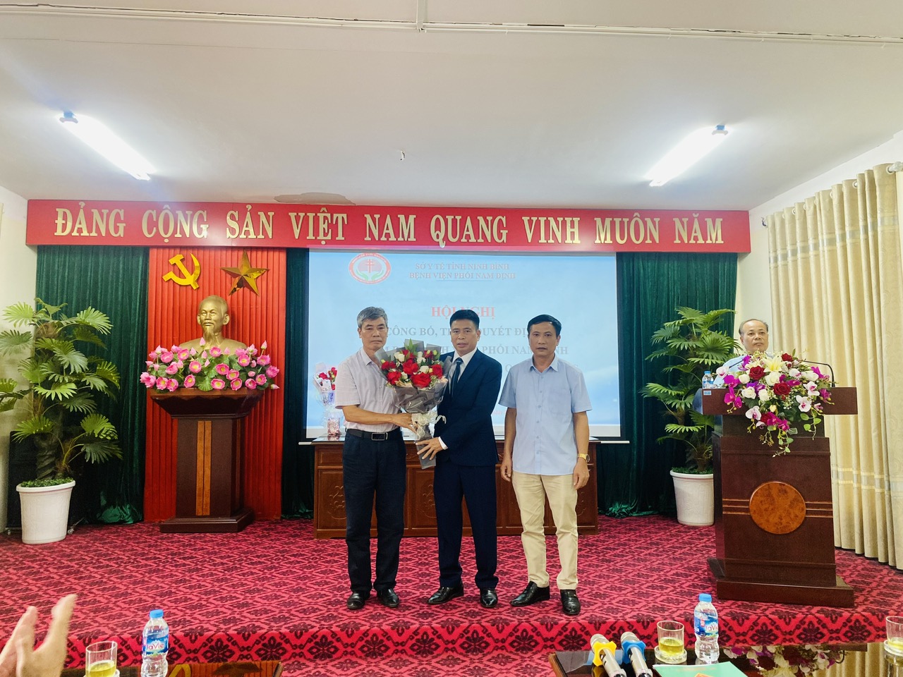 Thay mặt lãnh đạo Sở Y tế tỉnh Ninh Bình, TS.BS Trần Ngọc Minh – Phó Bí thư đảng ủy, Phó giám đốc Sở Y tế tỉnh Ninh Bình đã lên trao quyết định, giao nhiệm vụ, tặng hoa chúc mừng; đồng thời mong muốn trên cương vị mới, BS CK 1 Vũ Quang Phúc sẽ tiếp tục rèn luyện, nỗ lực phấn đấu, sát sao chỉ đạo giúp Bệnh viện Phổi Nam Định ngày càng nâng cao chất lượng, trở thành địa chỉ chăm sóc sức khỏe, khám chữa bệnh uy tín trong khu vực.